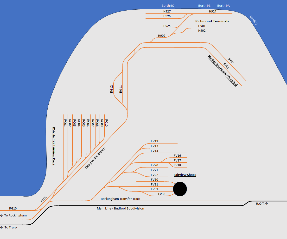 CN Fairview Shops, Fairview Cove, and Deepwater Branch This map shows track information related to the PSA Halifax Fairview Cove, CN Fairview Shops, Deepwater Branch, Halifax Intermodal Facility, and Richmond Terminals. Last updated 2025-05-29 Share this: Click to share on X (Opens in new window) X Click to share on Facebook (Opens in new window) Facebook Like Loading...