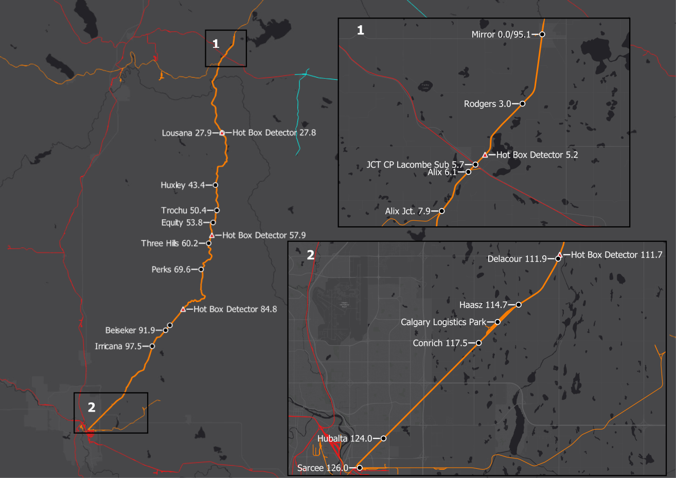 The CN Three Hills Subdivision is part of CN’s connection from Calgary to Edmonton. In recent years the line has seen an increase in traffic due to the new Calgary Logistics Park located at Conrich. The subdivision has 2 siding, but only Perks is actively used for meets as Billharte is too short.