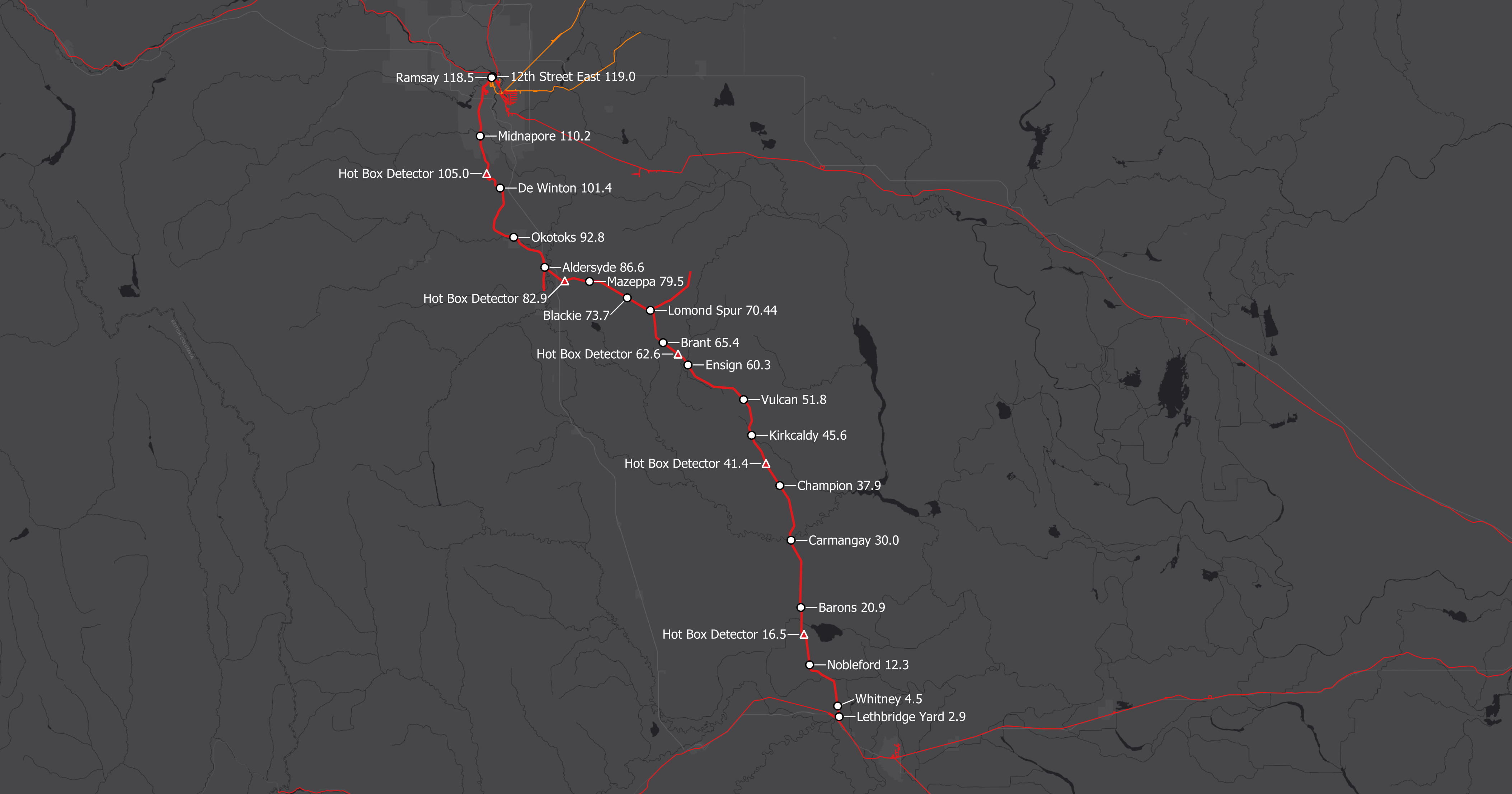 | Lethbridge Yard JCT with CPKC Crowsnest Sub Yard, Wye |
